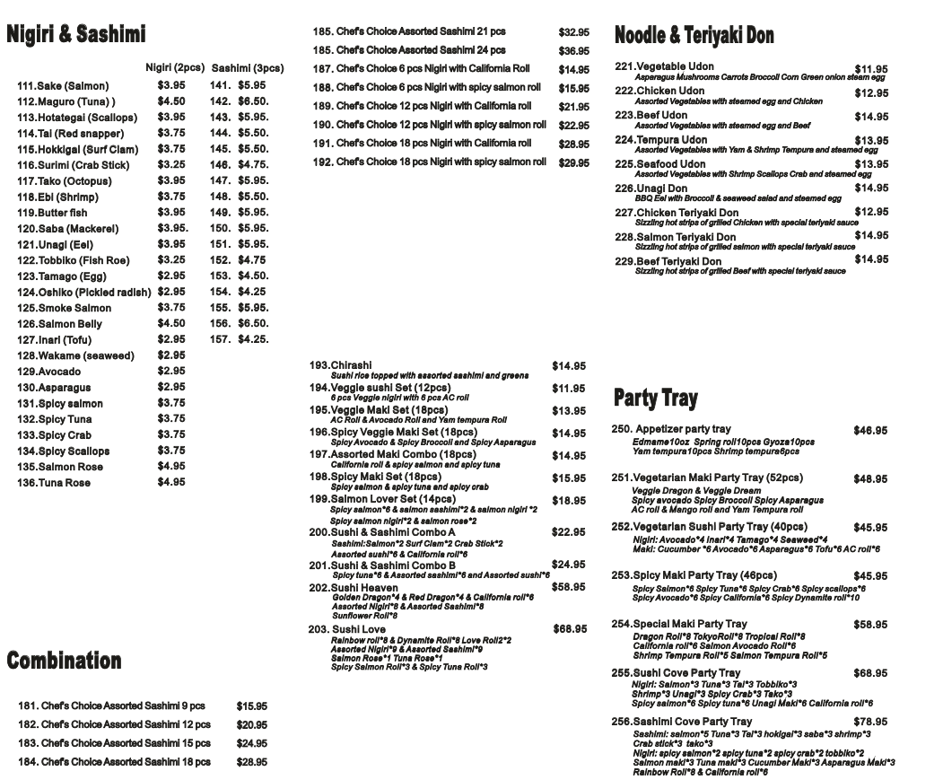 Noteworthy highlights include the Seafood Miso Soup, bursting with flavor from crab, shrimp, and scallops, and the creatively filled sushi rolls like the Red Dragon and Golden Dragon rolls. Customers rave about the generous portions and reasonable prices, making it an ideal choice for takeout. With quick service and friendly staff, Sushi Cove stands out as a must-try destination for sushi lovers. Whether you dine in or take away, expect a memorable experience that will leave you coming back for more!